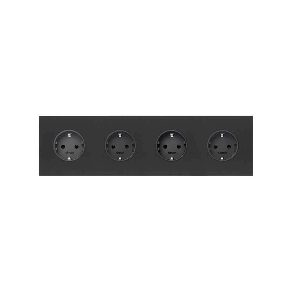 Kit front para 4 elementos con 4 bases enchufe schuko negro mate Simon 100