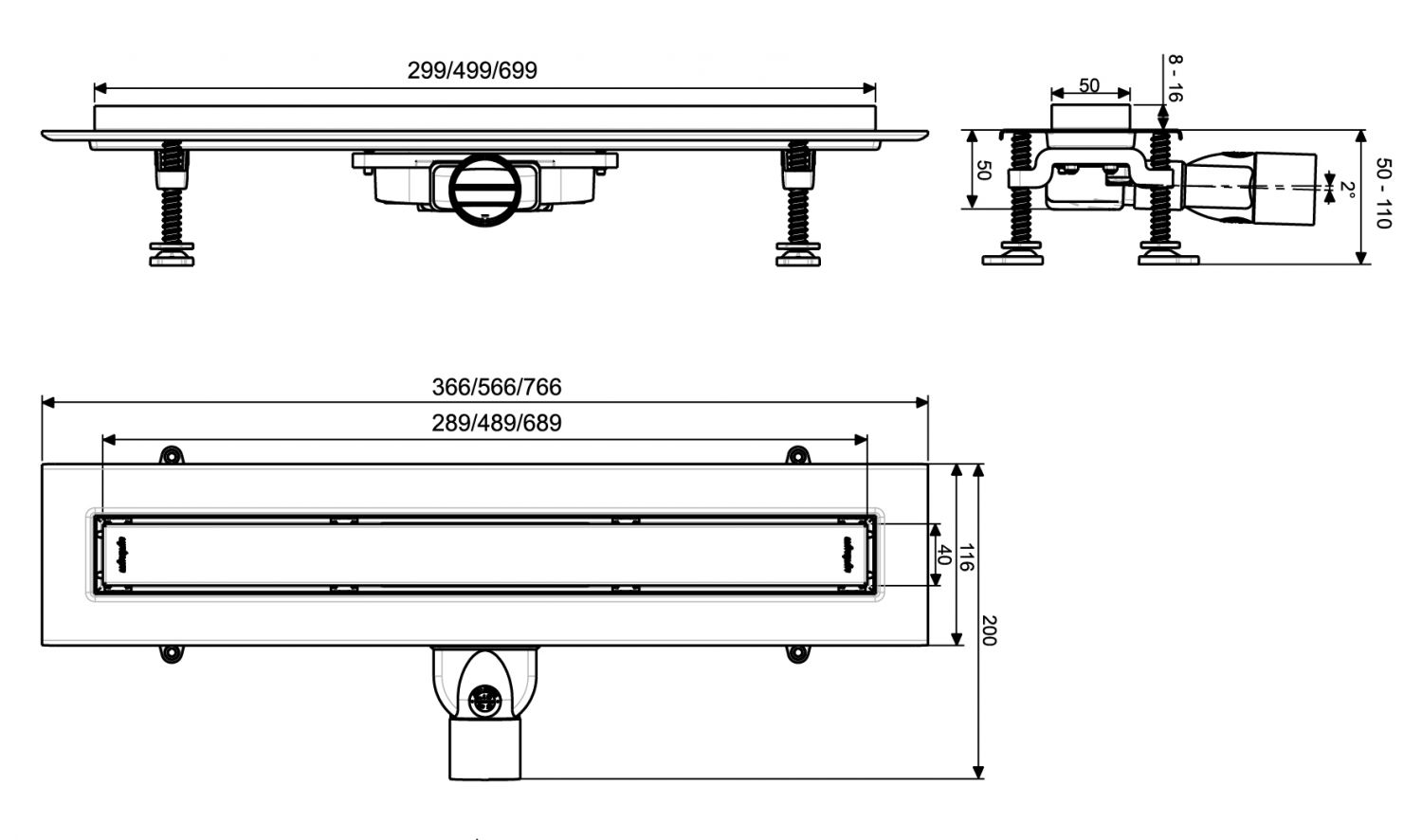 Gracias a su estructura compacta de solo 50 mm y pies regulables, es ideal para reformas o instalaciones con poco espacio bajo el plato de ducha. Incluye filtro de cabello extraíble y permite limpieza fácil desde arriba.
