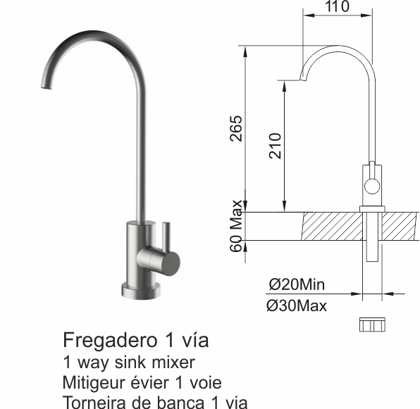 El grifo de 1 vía para tratamiento del agua es una solución sencilla para poder prescindir del agua embotellada en casa y contribuir a aumentar la sostenibilidad reduciendo el consumo de plásticos.
