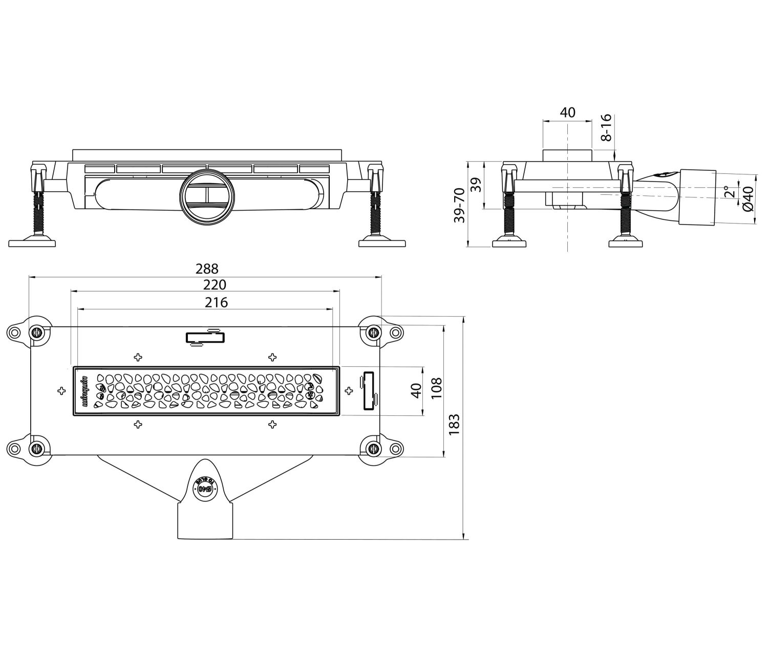 Gracias a sus guías de pendiente integradas, asegura una correcta inclinación del suelo para un drenaje óptimo. Incorpora pies ajustables y niveles de burbuja que simplifican la instalación, incluso para usuarios no profesionales.