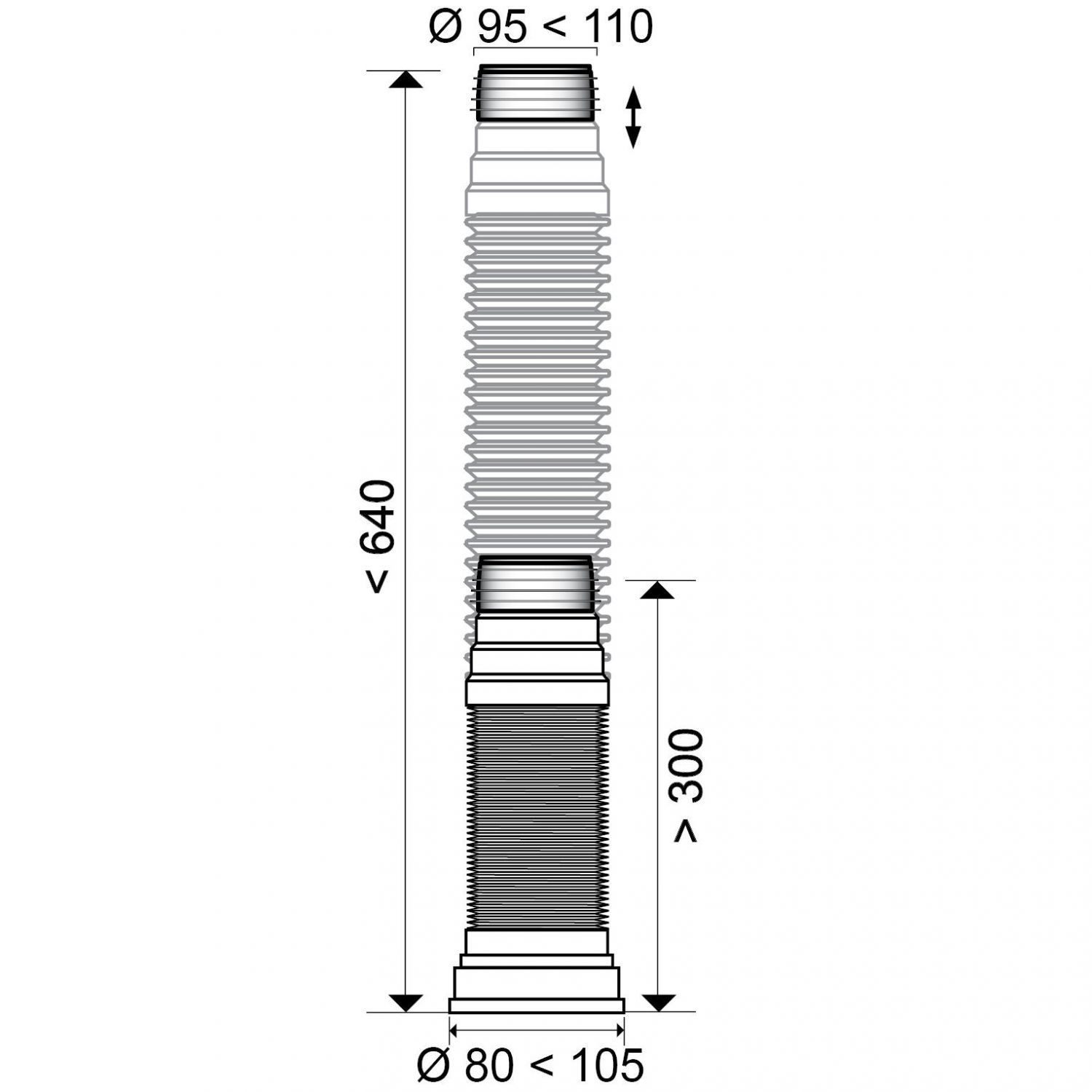 El manguito WC extensible labiado de WIRQUIN es la solución ideal para conectar el inodoro en instalaciones donde la distancia es mayor o irregular. Gracias a su diseño extensible de 300 a 640 mm, ofrece una gran capacidad de adaptación a diferentes configuraciones.