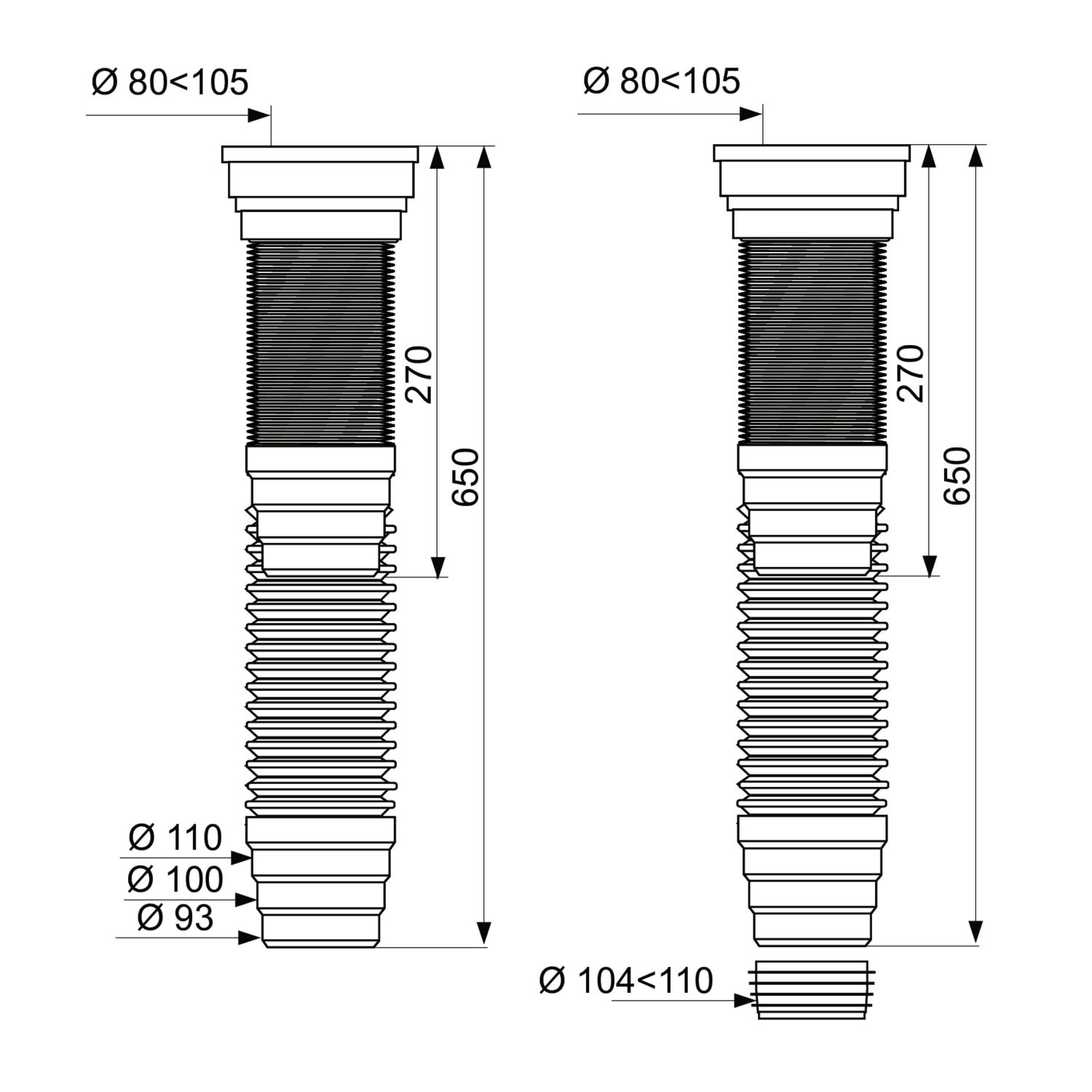 El manguito WC extensible con armadura metálica de WIRQUIN es una solución versátil y resistente para la conexión del inodoro en instalaciones con distancias variables. Su diseño extensible de 270 a 650 mm permite adaptarse fácilmente a diferentes configuraciones.