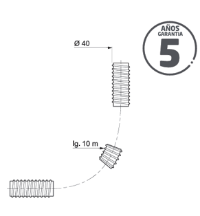 La manguera espiral de PVC Ø40 de WIRQUIN es una solución flexible y resistente para sistemas de evacuación de agua. Con una longitud de 10 metros, permite cubrir grandes distancias, adaptándose fácilmente a diferentes configuraciones.